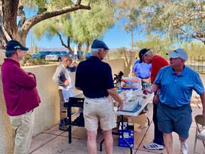 The Monday morning Men’s Pusch Ridge League has started a fun tradition that has become very popular! Every Monday an average of 28 men play the 9-hole course. About once a month the players are treated to a lunch of cheeseburgers and brats after they play.